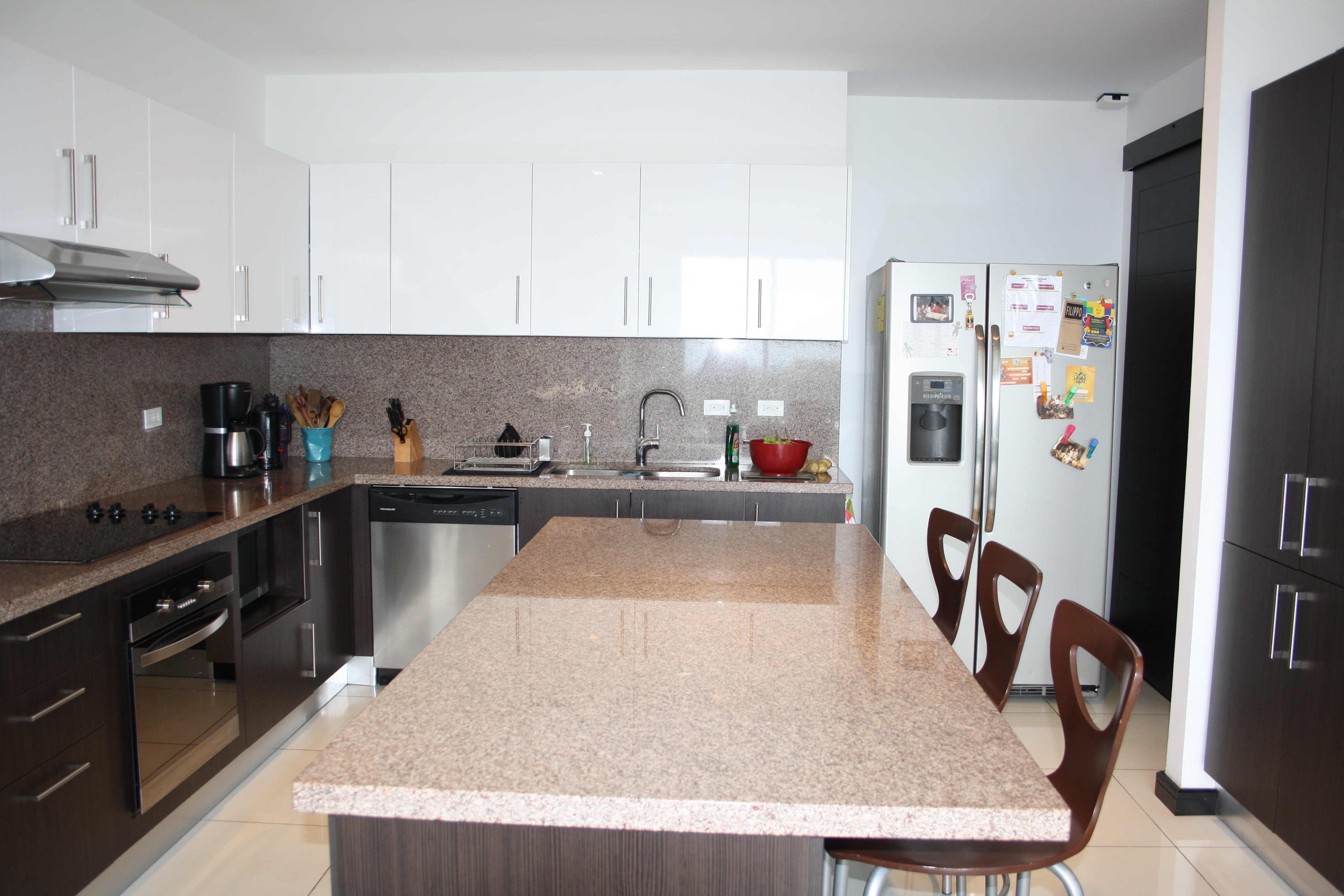 Luces LED en todo el apartamento, cocina italiana completa y dotada con isla, finos y lujosos acabados: piso de madera en toda la zona social y todas las habitaciones, cortinas Hunter Douglas en todo el apartamento, mosquiteros italianos en las 3 terrazas, grifería Kohler
